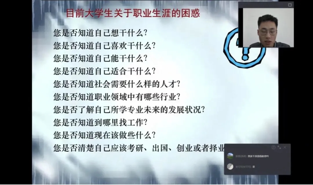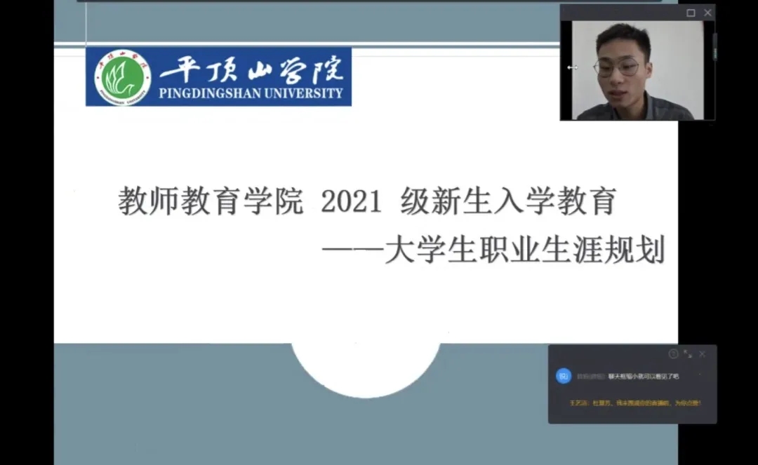 为了让21级新生对未来职业走向和职业发展有更清晰的认识,必赢官网于9月29日面向全体21级新生组织开展“职业生涯规划”线上主题课堂。本次课堂由必赢242net官网辅导员李世尧老师主讲。李老师将本次课堂划分为三大块:什么是职业生涯规划、为什么要做职业生涯规划、怎样做生涯规划三大部分,带领同学们更好地认识和了解大学生职业生涯规划。