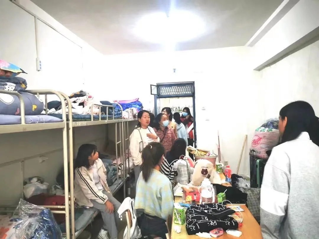 在走访过程中,程书记向新生普及了有关宿舍疫情防控以及违规使用电器等安全隐患方面的知识,提醒新生注意宿舍通风情况、卫生情况与用电安全,对一些还存在不足的地方提出了改进建议。同时她还向学生强调:当前仍处于疫情期间,大家应尽力减少出行,做好个人防护。21级新生辅导员杜老师与同学们进行了亲切交流,同时询问了部分同学目前的家庭经济状况,疫情对家庭收入的影响,并鼓励他们积极地完成专业课的学习,努力提高自身综合实力,在学习之余也应注意身体健康,保持规律的作息,加强锻炼。