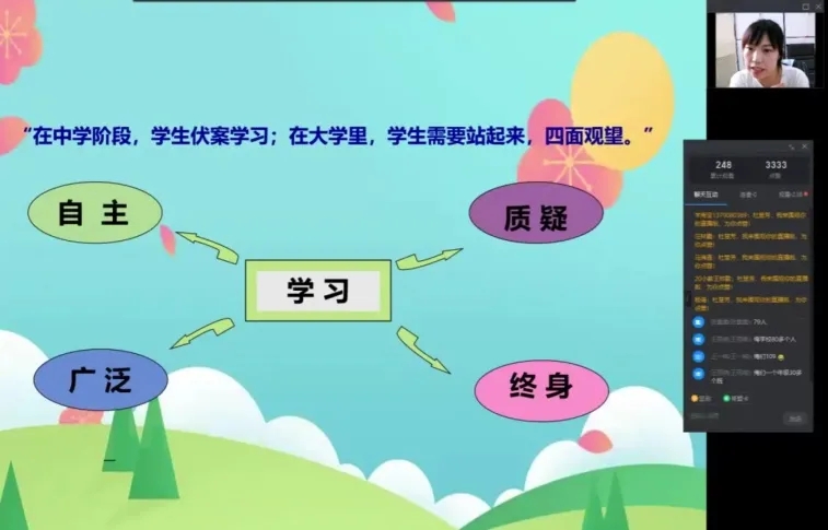 会议开始,袁泉老师主要从环境的适应,学习的适应,人际关系的适应,心理的适应,经济的适应五个方面来讲解此次教育内容。袁泉老师指出,新生入校后,首先要尽快熟悉校园的“地形”,入校后安排好行李,马上就到校园的各处熟悉环境。然后,袁泉老师要求学习上要高度自觉。袁泉老师指出,新生入校后,要尽力弥补自己的不足,还要多参加一些自己感兴趣或者有特长的活动。随后,袁泉老师提出要保持心境的良好和乐观向上的情绪,对未来充满信心和希望。最后,关于进入大学后的花费,袁泉老师指出要树立勤俭节约的观念,养成勤俭节约的习惯,另外袁泉老师强调新生要保护好个人财产,防止电信诈骗,网络诈骗等。