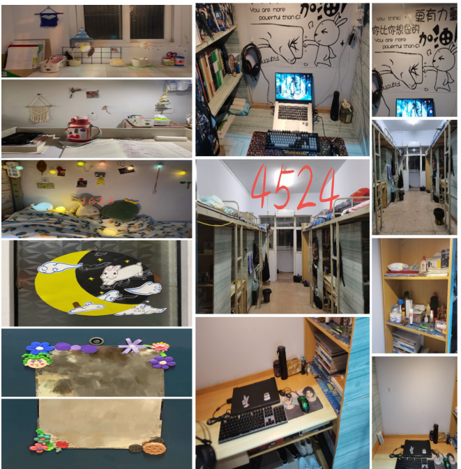 在评比过程中,有许多优秀作品。参赛的每个宿舍风格不一,有的宿舍十分喜庆、有的宿舍特别温馨,美丽的壁画等多姿多彩。
