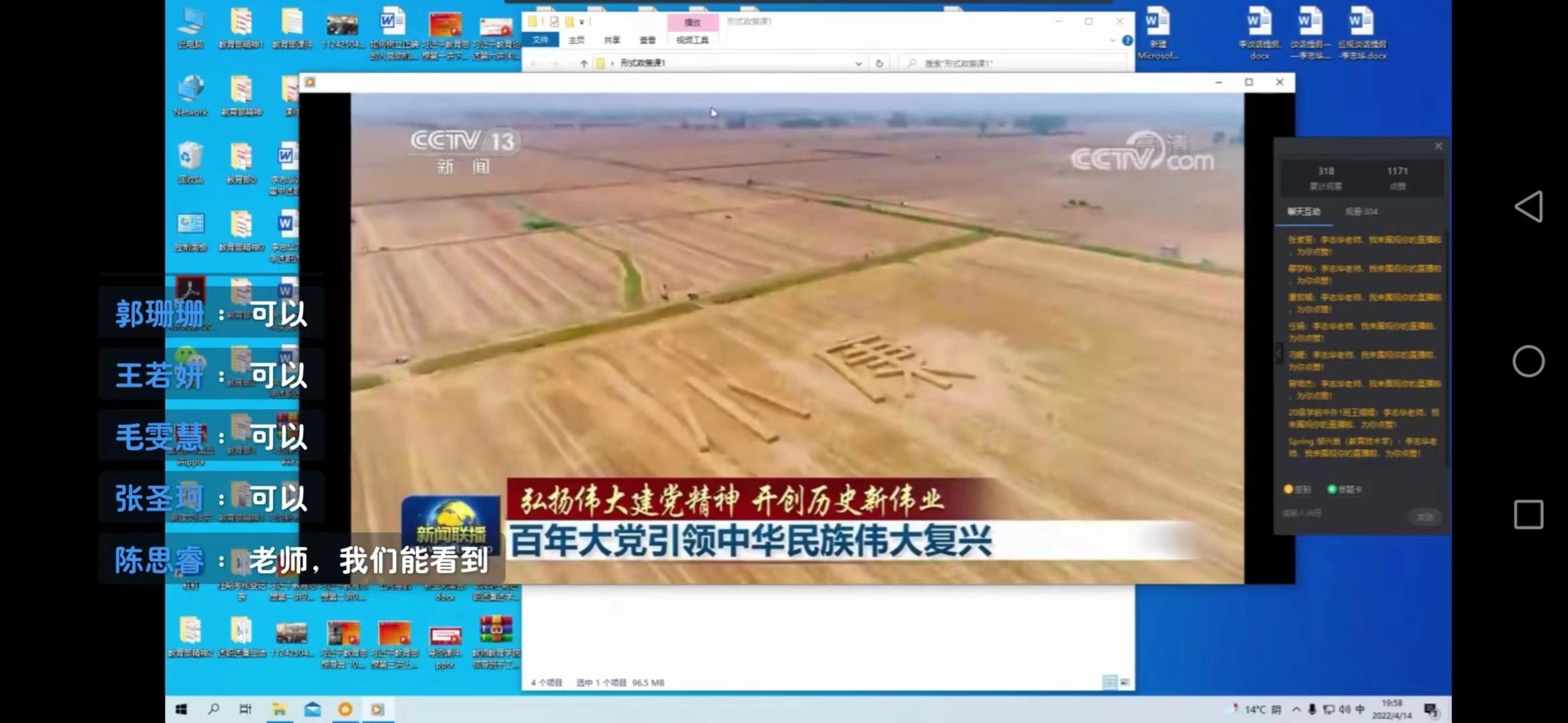 为使当代大学生在中国共产党百年华诞的重大历史时刻、继往开来的重大历史关头,更加认识到中国共产党的伟大成就,按照学校大思政方针,2022年4月14日晚19点,必赢242net官网党总支书记李志华通过钉钉直播进行本学期《形势与政策》课第一讲。