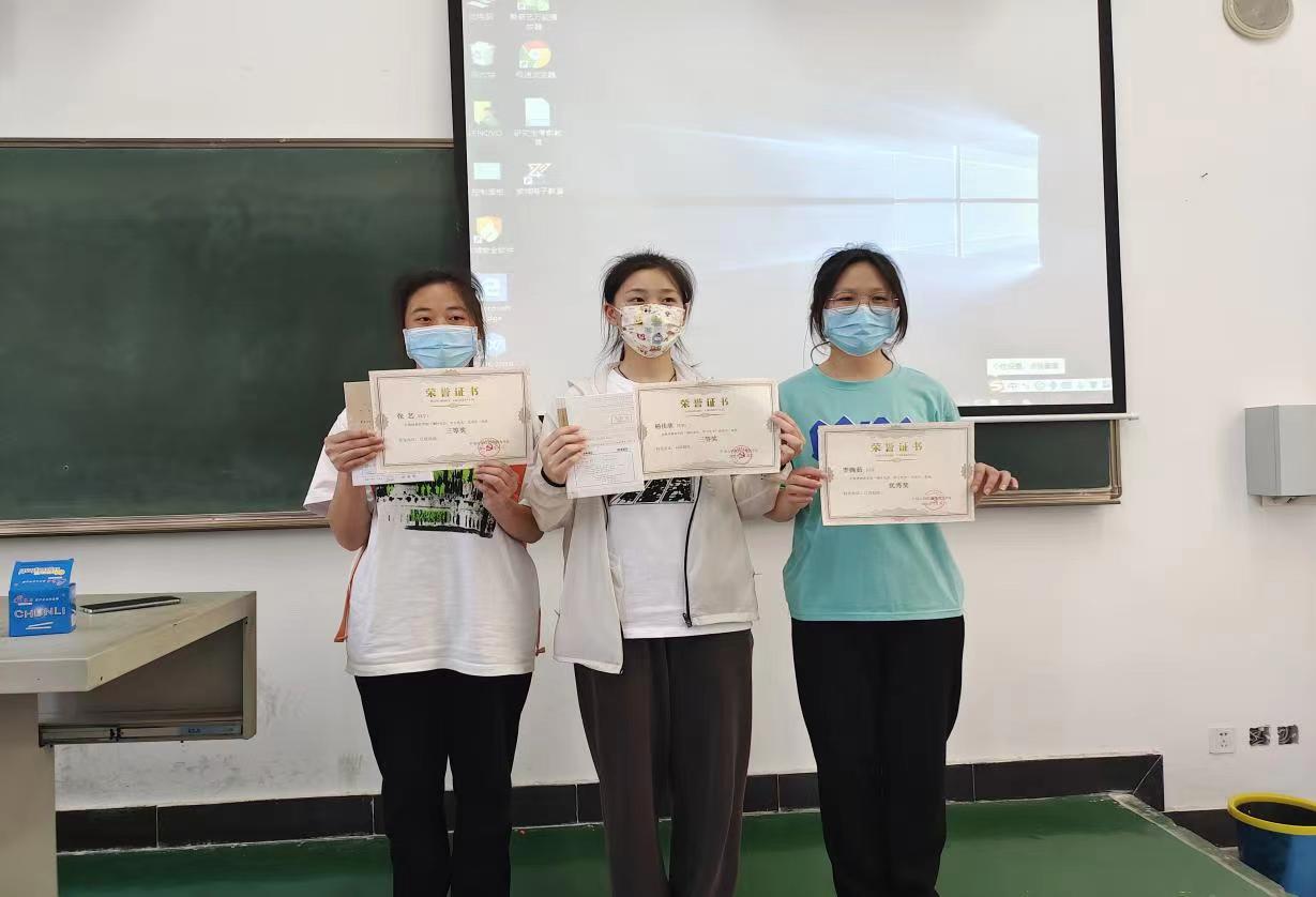 4月21日下午15:30-16:30在2112教室为获奖同学发放证书及奖品,恭喜王菲,孟琪睿,谷亚琦等13名同学获得一、二、三及优秀奖。