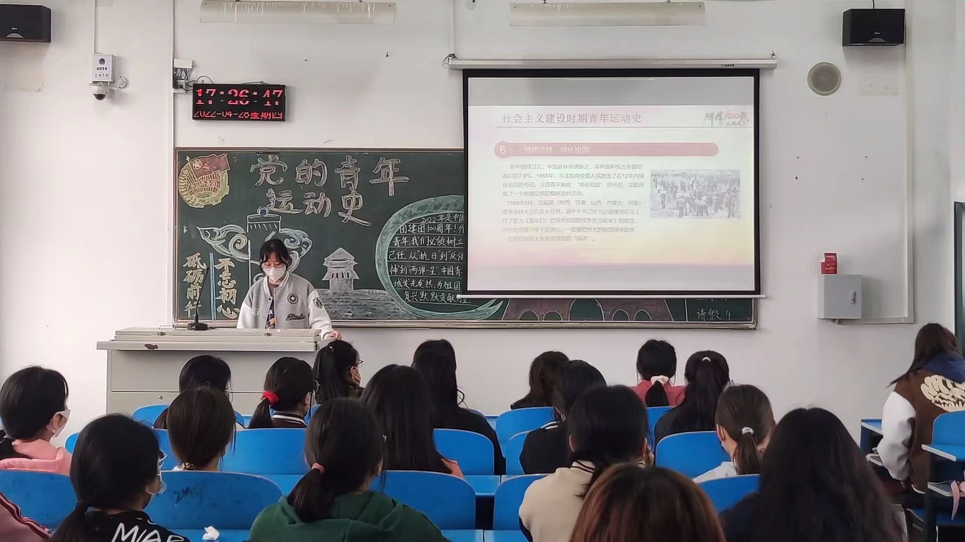 在党的二十大即将召开之际,为了使广大共青团员了解党领导下青年运动以及所取得的成就,同时,也为了激发广大青年人的爱国情和蓬勃力量,为中华民族的伟大复兴有所为。4月28日,必赢242net官网在一号教学楼开展以“党的青年运动史”为主题的团日活动,必赢官网全体同学参与此次活动。
