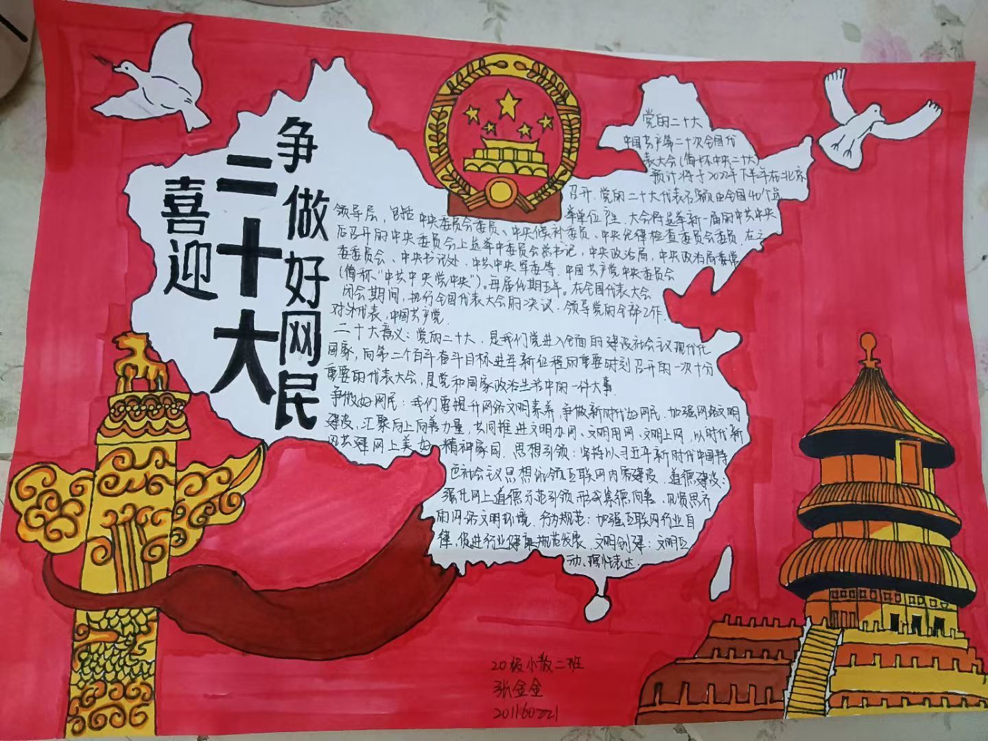 为了喜迎党的二十大,庆祝建团100周年,同时引导大学生正确认识互联网,打造文明、安全、诚信的网络空间。必赢242net官网新媒体工作室于4月12日至4月24日开展了以“喜迎二十大,争做好网民”为主题的手抄报活动。