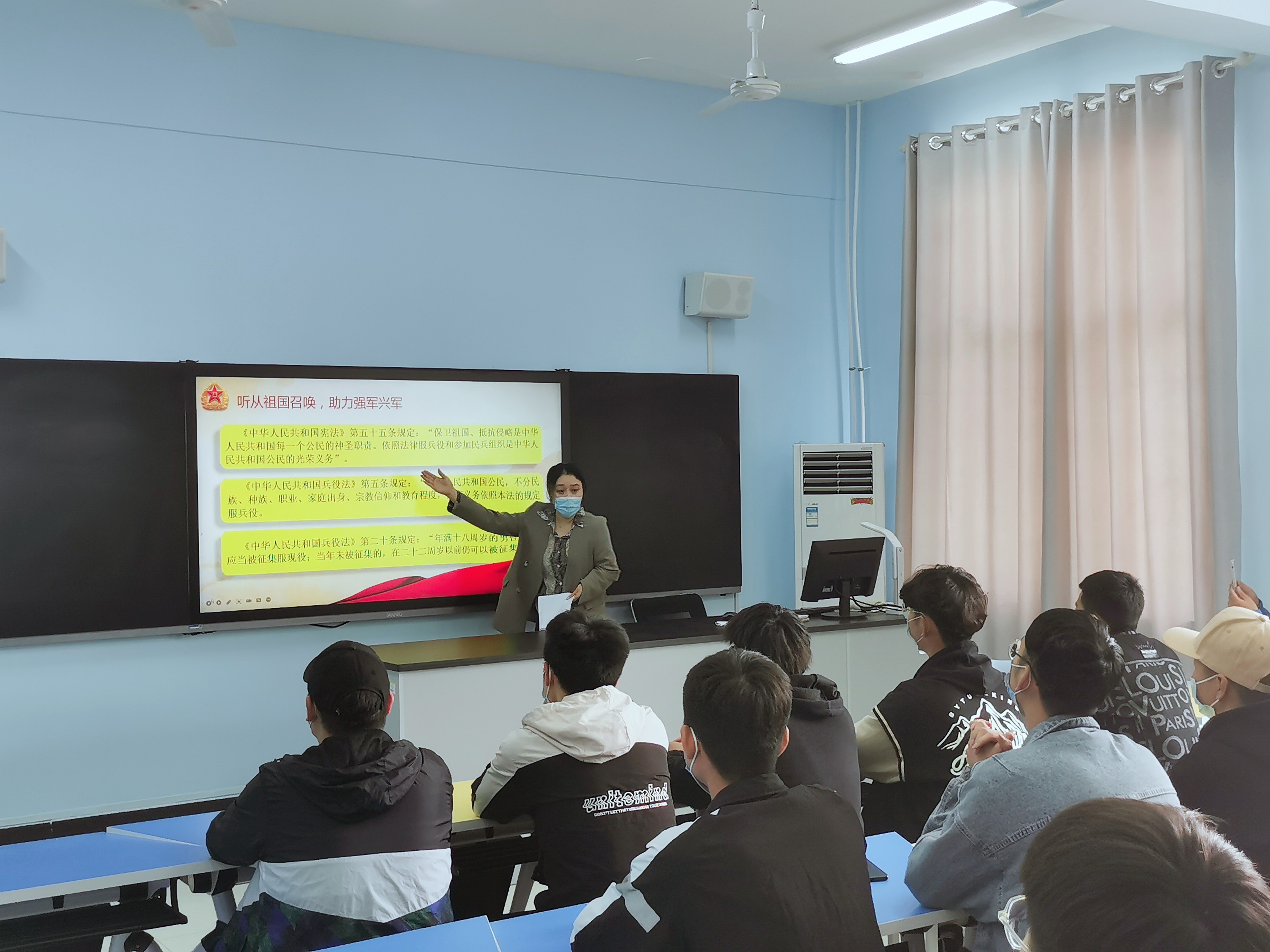 李琦老师主要从听从祖国召唤、助力强军兴军,政策支撑梦想、砥砺成长成才,踊跃参军报国、谱写青春荣光三个方面进行讲述。列举了《中华人民共和国宪法》的相关内容和袁远、项思楚等优秀士兵事例来鼓励必赢官网学生投身军营、建功立业。