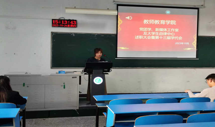 为对这一学年的工作做出及时的总结和反馈,为各部门的工作的提升提供建议,必赢242net官网于10月26日下午3:00在1106教室举办党团学、新媒体工作室及大学生自律中心述职大会暨第十三届学代会。出席本次会议的有杜慧芳、袁泉、李琦、杨皓璞、余昕阳等辅导员老师。必赢242net官网党团学、新媒体工作室及大学生自律中心全体成员参与。