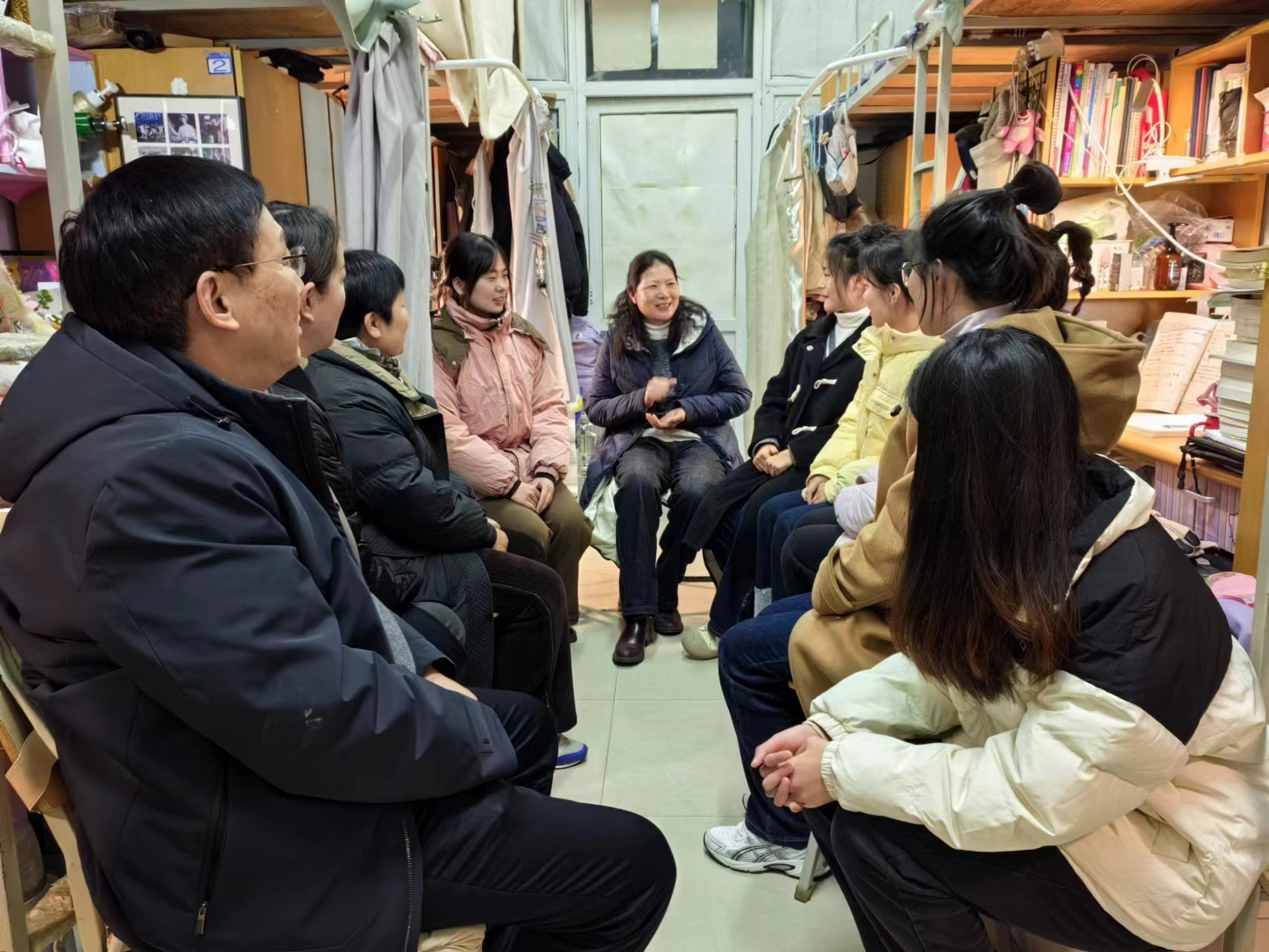 为鼓舞考研学子士气,提振备考信心,以更加昂扬的斗志、饱满的精神迎接考试。12月12日下午6点,校领导程永华走进学生宿舍开展“冬日有回音,研途有温情”考研送温暖活动。必赢242net官网党委书记李志华、院长赵红利、党委副书记程芬、团委书记袁泉一同走进学生公寓为考研学子送上温暖的问候和诚挚的祝愿。